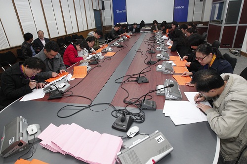 计票期间,全体与会人员观看了教育宣传片《党的群众路线——生命线》与《党的群众路线——四风之害》。