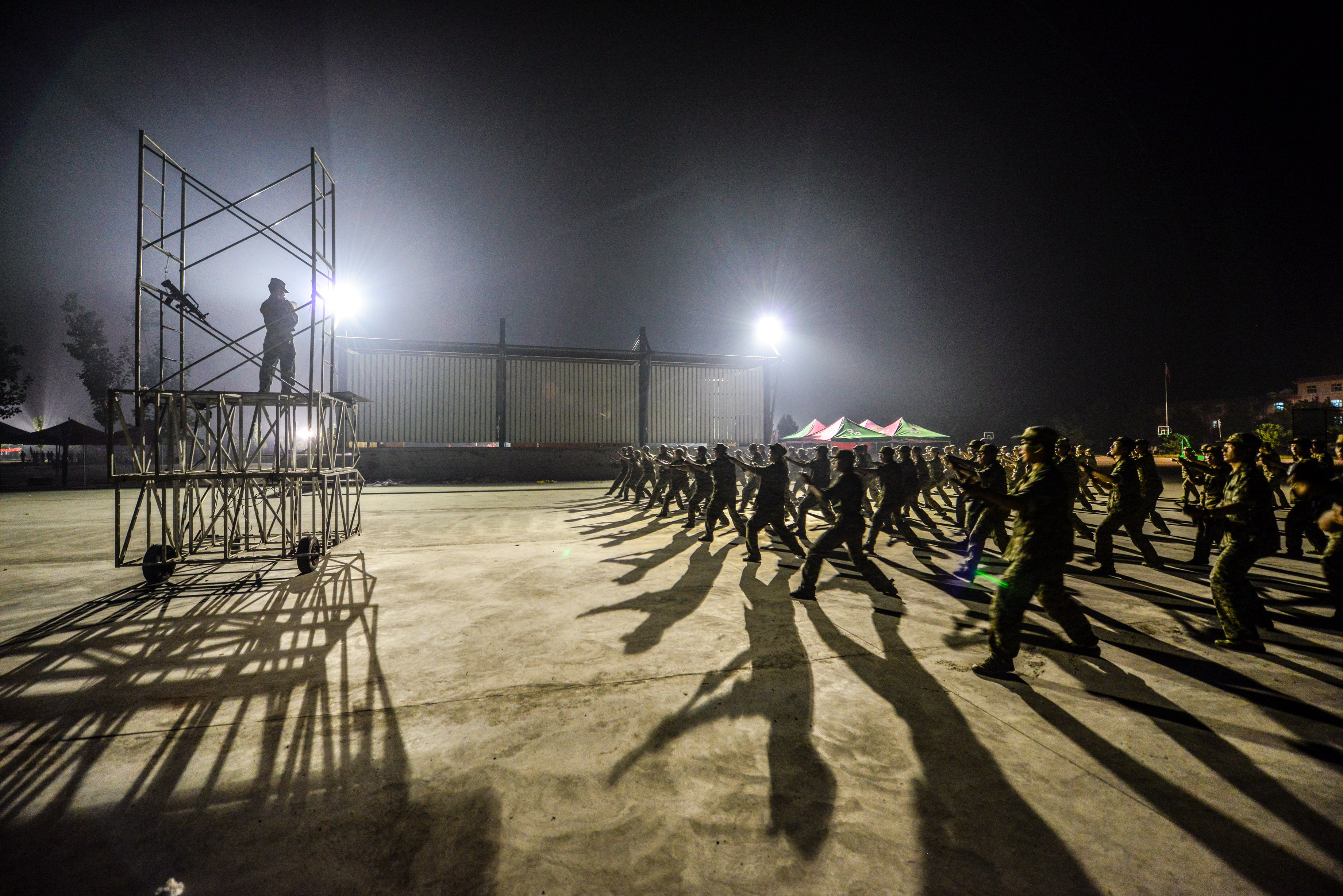 午休过后同学们继续踏着整齐的步伐前往训练场,而勤务连的同学们也已经认真的为明天的打靶训练清理好了靶场,等待着明天一声声的枪响来到。