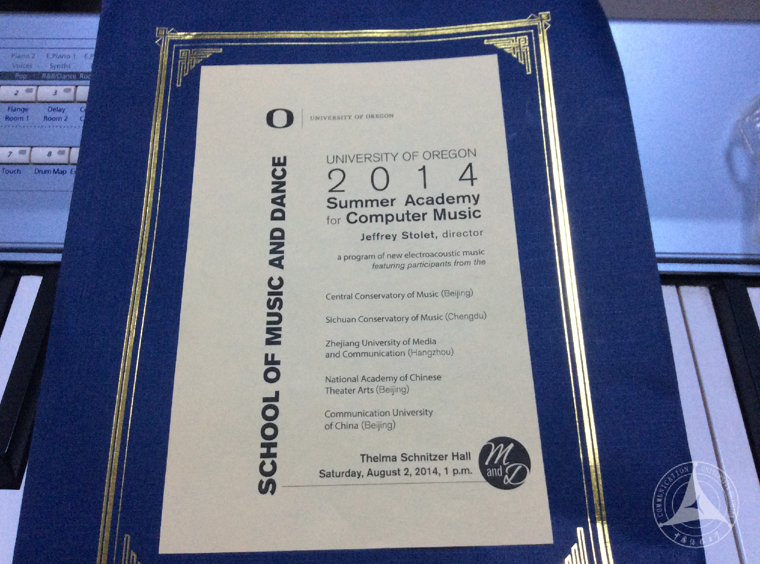 7月,美国俄勒冈大学(位于Eugune,Oregon)电子音乐中心举办了一年一度的夏季大师班,我校学生杨宇航、徐小笛(2012级电子音乐制作专业)代表学校作为夏季小学期实践项目赴美参与这次活动。在为期两周的大师班课程中,学生们主要围绕名为Kyma的系统进行基础的学习与大量的实践。