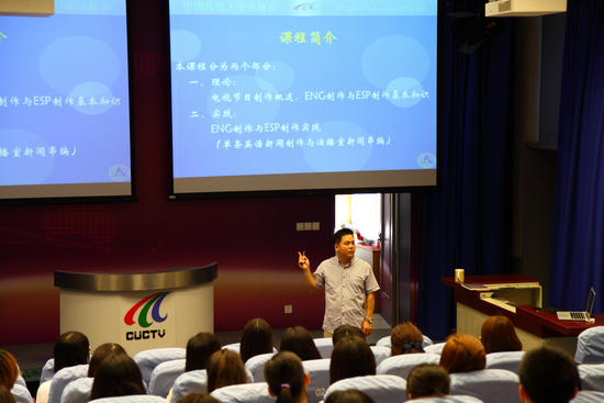 为践行“校园大课堂 传媒大舞台”的教学理念,外国语学院英语系与校园电视台达成合作意向,共同完成暑期实践教学。刘杰锋副台长亲自授课,英语系国际新闻组老师配合指导,师生共同完成20分钟的英语新闻制作。理论课的学习使同学们对电视制作有了基本认识;实践课则锻炼同学们亲手操控演播室与控制室的能力。理论与实践的结合增强了同学们对电视节目制作的兴趣。