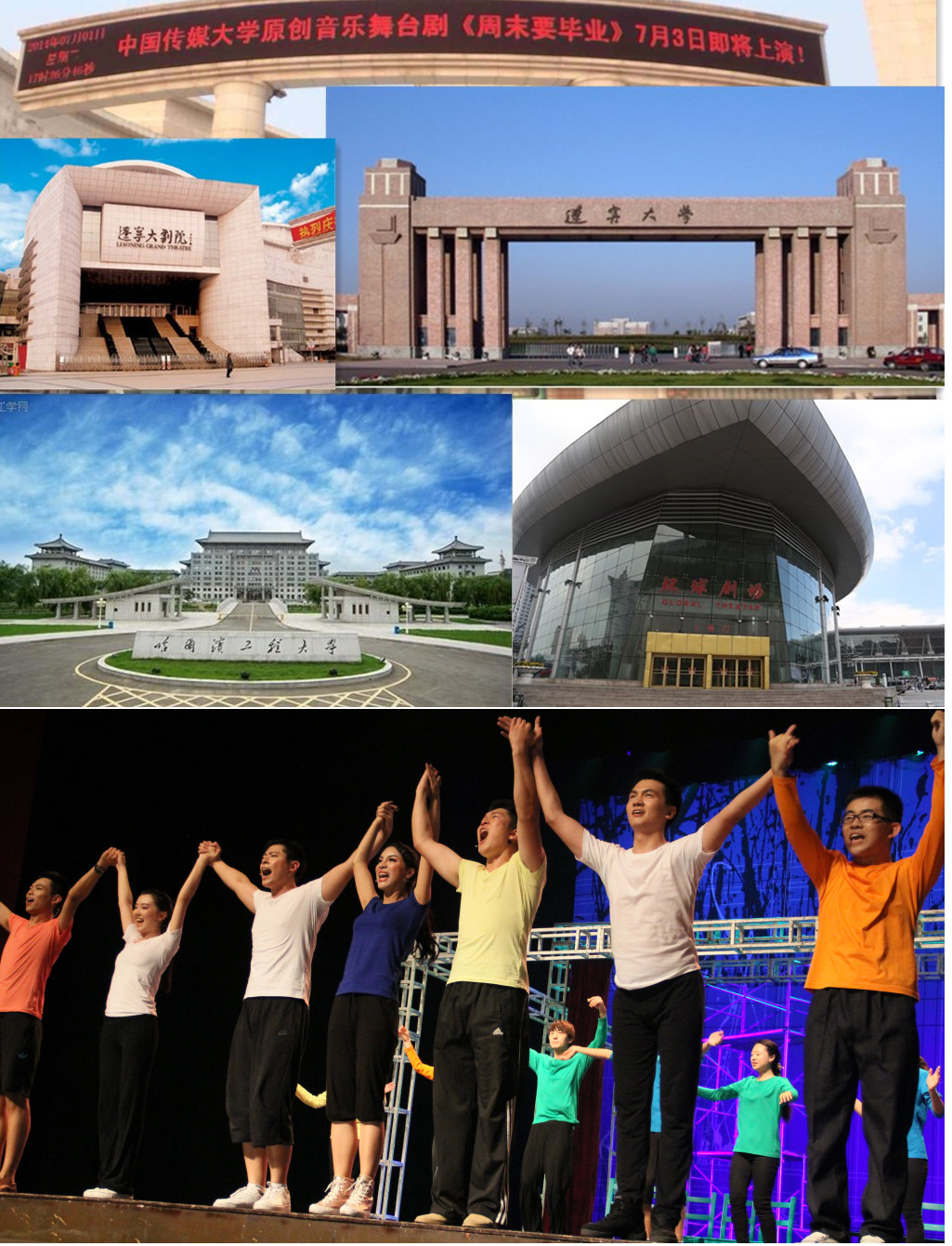 本课组由多个专业的5位指导教师、32位学生组成,于7月1日至15日在沈阳、哈尔滨两个东北省会城市,辽宁大学、哈尔滨工程大学两所全国重点高校及辽宁大剧院、哈尔滨环球剧场两家社会知名剧院将《周末要毕业》成功落地上演。本剧所到之处掀起一股股强烈的青春热潮,也强化了这一代表着世界杯直播在线观看艺术类多专业学生联合创作水准的戏剧品牌,同时极大地提升了我校的影响力价值。