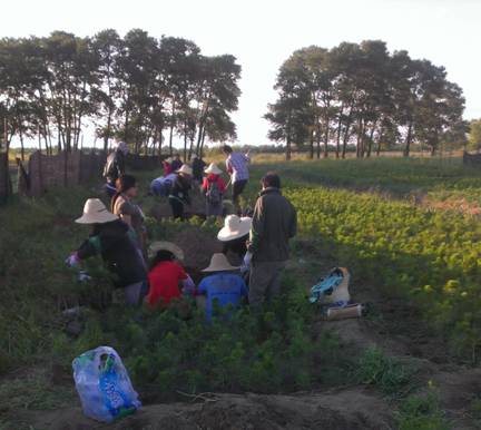 随后,全团前往该乡绿化基地,为先前志愿者所种植的树苗除草,给小松树更换营养杯。为提高效率,全团分为6个劳动小队,队内成员相互配合、分工协作,各队之间相互比拼、互不服输。经过4个小时挥汗如雨的劳动,大家顺利完成第一阶段的劳动任务。