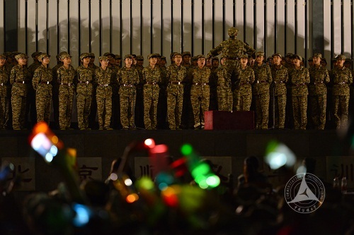晚上,训练场上荧光闪烁,歌咏比赛如期举行。在十几天的军训生活中,同学们除了参加军事技能训练和军事理论课的学习,还在休息时间学唱了校歌和一首各自连队自选的军旅歌曲。悠扬的白杨之歌和铿锵有力的军营之歌响彻训练场上空。获得第一名的是来自理工学部和播音主持艺术学院的女生四连,第二、三名分别是男生二连和女生七连。当天晚上,军训团还特地为同学们准备了一份惊喜,在2014级的新生中,一共有80余名同学在军训阶段过生日。军训团特地为他们准备了生日蛋糕,全团1900余名同学合唱生日快乐歌,在高原老师的提议下,全体师生仰望星空,为远方的亲人默默地许下自己心中最美好的祝愿。许多同学都留下了感动的泪水。