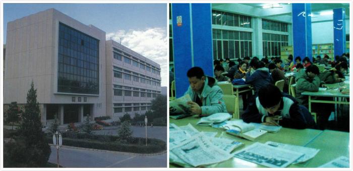 1984年,学校开始筹划建立新的图书馆,三年后,8400平方米的图书馆新楼竣工,正式投入使用,这就是后来的南图书馆。图书馆馆员张宪佳说:“同学们都挺高兴的,从平房搬到楼房。条件又进了一步。”新馆的建成,奠定了我校图书馆“六部一室”的组织管理基础——六个业务部门和一个办公室。同时,图书馆的业务也全面开展起来,承担起了教学任务。