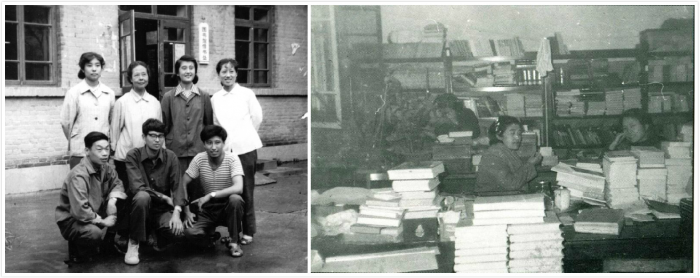 1974年,学校逐渐从文革中恢复,文化广场两套平房便用作了图书馆,总共约1000平方米。“我是70年代初来到学校图书馆工作的,只有两三个人,在一间小房子里工作。看到这种情况,我心里有点凉。没有书,就算买了书,放的空间也很有限,条件非常艰苦”,原图书馆副馆长李宏桥回忆说。即使这样,扩充图书资源也刻不容缓。“我和图书馆另外一个采访部的领导,趁着‘批林批孔’的时候,跑到中国书店买了几车古书。确确实实非常好的古书,又很便宜,那好事!但为什么当时领导能同意呢?我们说,‘批林批孔’得有靶子,这个就是靶子!以这个名义,进了一批中国文化经典,我现在有时候看到这些经典,心里头也觉得很光荣。”