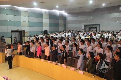 9月26日下午,播音主持艺术学院2014级新生入学礼在综合实验楼400人报告厅隆重举行。播音主持艺术学院院长鲁景超,党委书记郑维林,副院长李洪岩,副院长栾洪金以及辅导员、班主任、教学办负责人出席入学礼。14级播音本科班、播音二学位班和播音硕博班的两百多名师生齐聚一堂,畅谈青春梦想,共话美好未来。学院学生会主席、2011级播音本科班学生赵宇昕主持入学礼。