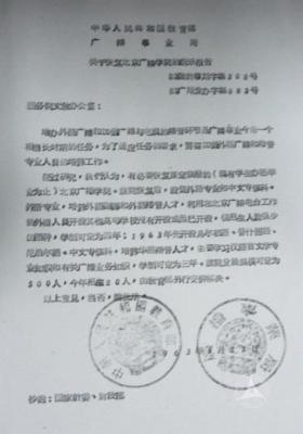 1962年4月24日,周新武、左荧联合给中央广播事业局党组打报告,提出保留广播学院,外语、播音专业继续招生。25日,局党组书记丁莱夫签署同意保留北京广播学院的意见,并于26日以中央广播事业局名义致函教育部。