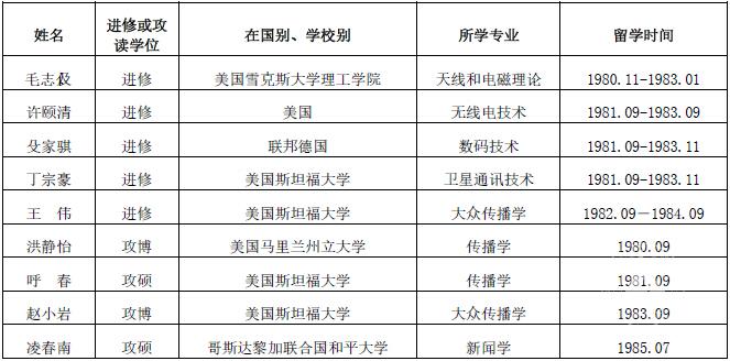 北京广播学院 1980-1985 年参加教育部选派出国进修的教师举例