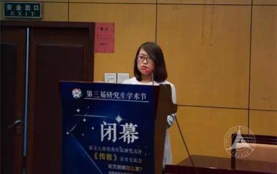 校研究生会主席吕强回顾了学术节开幕27天以来开展的各项活动,包括大师公开课、“传媒人·知行路”系列讲座、博士后论坛、征文大赛等,这些活动促进了学术的多维交流,思想的深度碰撞。文法学部、MBA联合会及外国语学院的学院研会也开展了许多活动,除学术讲座、沙龙外,又有学院特色的活动,如外国语学院的读书会,MBA学院开展的公益活动等。