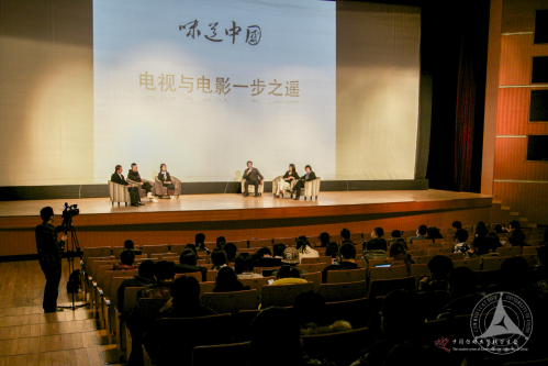 校友王冰,讲述了一个在拍摄过程中遇到的小故事,从这个故事中他看到了食物表象后的多重性,食物在他眼里不再是用以果腹的工具,而是上升为一种精神意象。总导演眼中“爱拼命”的张伟则将自己称为“影像里的手艺人”,他分享了自己在拍摄长白山辣酱和广州烤乳猪时的经历,与美食相关,却比美食更令人印象深刻。最后一位嘉宾是《舌尖上的中国1》的执行导演任长箴,她就“从纪录片到电影的跨越”这一影视界的巨大一步进行了深入讲解,她认为纪录片院线化是一件可喜可贺的事情,这种转变会逼着中国导演学习讲故事。随后,现场播放了五分钟的《味道中国》片段。