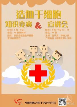 活动时间:5.18——5.19 活动地点:48教 发布者:传媒红会 周一(5月18日)48教前小树林 领取造干知识小卡片并填上答案 (当场填or回寝室填都可以) 周二(5月19日)晚上六点半 就可以凭卡片领奖品 还可以领略唐子文师哥的风采 (中央人民广播电台《纵横之声》主持人) 子文师哥还是中国第2223名造血干细胞捐献者