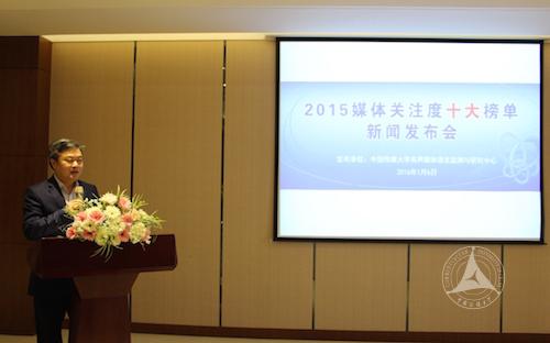 (通讯员 邹煜)2016年1月6日,我校国家语言资源监测与研究有声媒体中心举行“2015媒体关注度十大榜单”新闻发布会。廖祥忠副校长出席发布会并致辞。