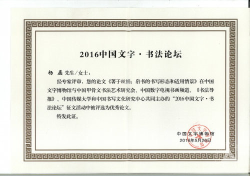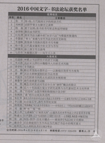 5月26日,由中国文字博物馆、世界杯直播在线观看中国书写文化研究中心等单位联合主办的“2016中国文字·书法论坛”在中国安阳中国文字博物馆举行。我校刘守安教授作了《“汉字书写”与“书法创作”》的主题演讲,受到与会专家的肯定和好评。我校中国书写文化研究中心首届博士生杨磊应邀在论坛作大会发言,宣读了他获得“优秀论文奖”的论文,得到了与会专家和学者的认可。