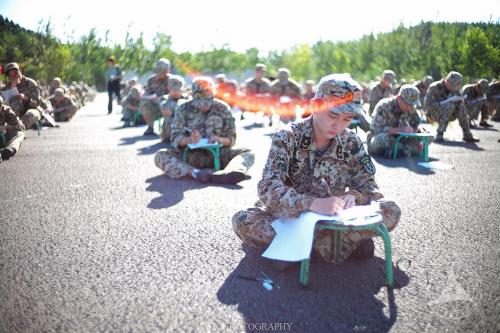 (记者 宋佳音 姜晨芝 摄影 徐顺 蓝天 )2016年9月9日,初秋的阳光照在顺义基地的训练场上,衣着军装的16级新生们席地而坐,趴在小板凳上认真的进行着军训理论考试。