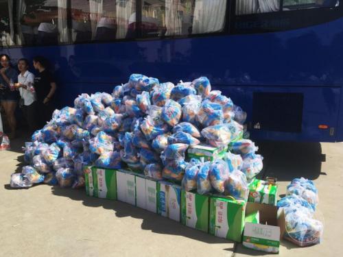 各个学部院的老师的到来,给刚刚参加完考试的同学莫大的惊喜,老师们刚一下车,他们就簇拥着围了上来,领到了学院给他们带来的牛奶、午餐肉、水果薯片等零食,喜悦的情绪跃然脸上。