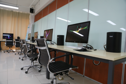 国际传媒教育学院(ICUC)是我校的“新成员”, 它创立于2014年,正值我校60周年校庆之时,是教育部国内首个批准成立的传媒类综合学科中外合作办学机构,以“汇聚全球精英,传播中国智慧”为理念,致力于创建“国际化高等教育创新示范基地”。进入学院,独具特色的科研气息和产教融合的氛围便扑面而来。罗院长告诉我们,国传院的一大培养理念便是产教全面融合,在教育过程中将产业模块完全植入,即国内外一流教育资源的“实质引进”。在对学生进行基础教育、通识教育的同时,尤其注重技术和艺术的有机融合,培养其成为GMC(GLOBAL MEDIA CITIZEN:传媒全球公民),从而向世界传播中国智慧。