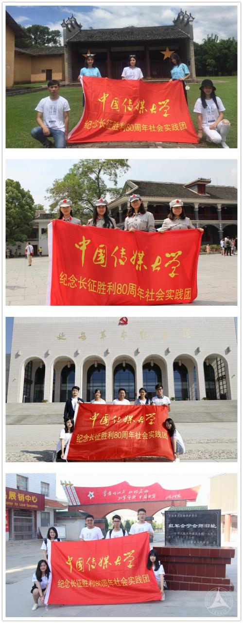 在我校今年的暑期社会实践中,10余支团队以长征胜利80周年为主题开展各类实践调研活动,其中既有校级重点支持“纵骋长征思英魂”——纪念长征胜利80周年主题调研,也有学部学院自主申报的“重走长征路——四川省红军长征历史考察”实践团和定额资助的“延安—探索红军长征最终落脚地的历史与今天”实践团。在这些活动中,最具代表性的是“纵骋长征思英魂”主题调研实践团,校团委4位老师带队,率领团学干部分赴瑞金、遵义、延安、会宁这四个长征路上的重要节点开展实践调研。瑞金分团深入曾经的中华苏维埃共和国临时中央政府所在地——叶坪,寻觅毛泽东等老一辈无产阶级革命家的足迹;遵义分团踏入了遵义会议旧址,实地感受遵义会议召开的相关场景;延安分团寻访了延安革命纪念馆和延安新闻纪念馆,重温了我国新闻及出版业的发展历程;会宁分团参观了红军会宁会师旧址、长征胜利景园和大墩梁村烈士陵园,直观地感受长征的峥嵘岁月。