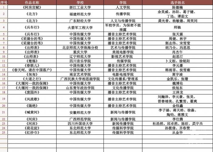 第19届齐越朗诵艺术节 暨全国大学生朗诵大会复选名单