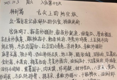 以下精选的十则日记为夏霆在部队训练期间所作,反映了他在部队生活的经历和感悟。