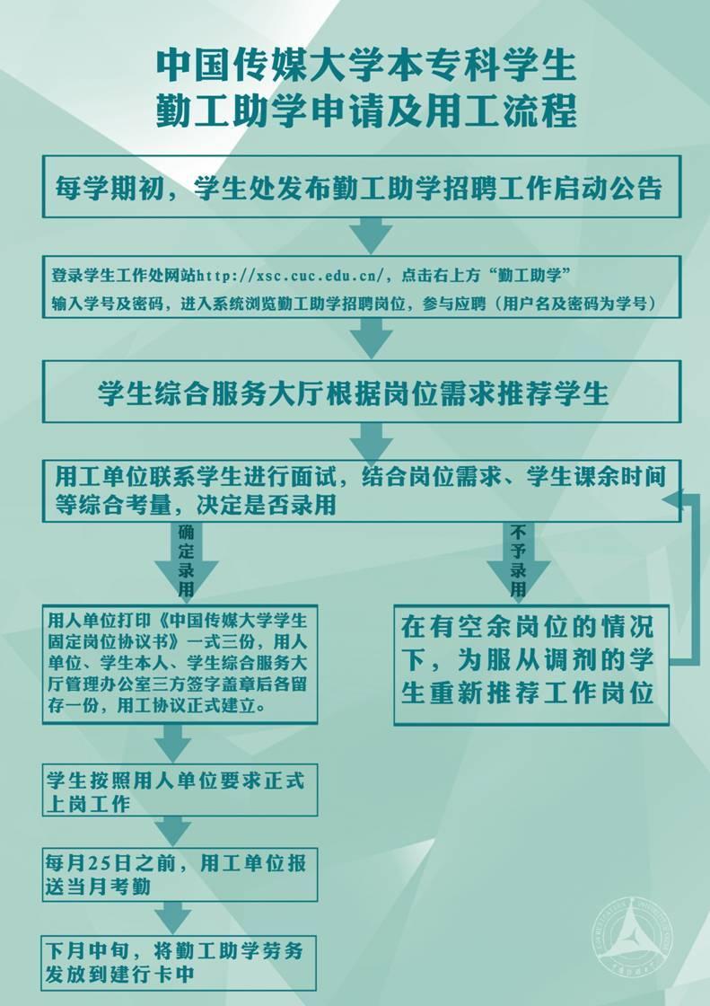 3. 勤工助学岗位管理、酬金标准、纪律和奖励等按照《世界杯直播在线观看勤工助学管理办法(修订)》(中传学字【2016】138号)执行,管理规定见《学生手册》。