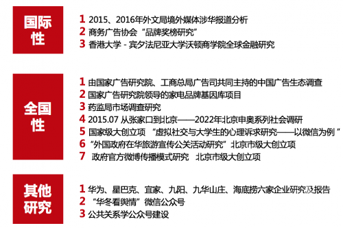 大学期间,我们在老师的指导下参与了众多由国家广告研究院、商务广告协会等开展的研究,广泛接触了业界专业的科研项目与成果。在专业比赛方面,公共关系是一个十分注重实践锻炼的专业,各种类型的大赛品目繁多。