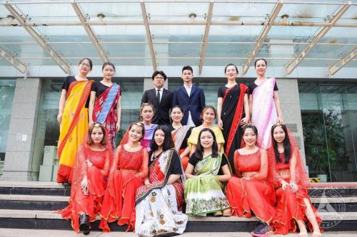 我班受孟加拉国驻华大使卡里姆先生邀请,在班主任张潇予的带领下赴孟加拉国驻华大使馆参加孟历新年庆祝活动。在活动中,我们演唱了由泰戈尔作词作曲的经典曲目《Boro Asha Kore》。在场的孟加拉朋友们看到我们中国学生身穿纱丽演唱泰戈尔歌曲深受感动,感受到了家乡的年味儿。