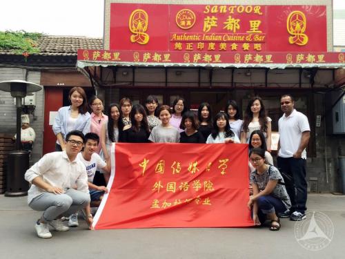 除此之外,我班还受邀出席了由中国际广播电台主办的中国首部从孟加拉语翻译的《泰戈尔作品全集》首发式及“中孟文学对话”活动。受邀赴北京大学参加“一带一路”公共孟加拉语文化日和“从中印文明共鸣到中印命运共同体”研讨会。虽然这些对外交流活动规模有大有小,形式各异,但是初衷都是为了开拓我们的视野。我们也体会了中孟、中印间的文化差异,学习了如何更好的成为民间交往的使者,诠释了代表着国家形象和学校形象的青年力量。