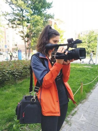 福洋月从选题策划、拍摄、剪辑到完成作品,用了差不多一个半月的时间。图为她在作品拍摄过程中。