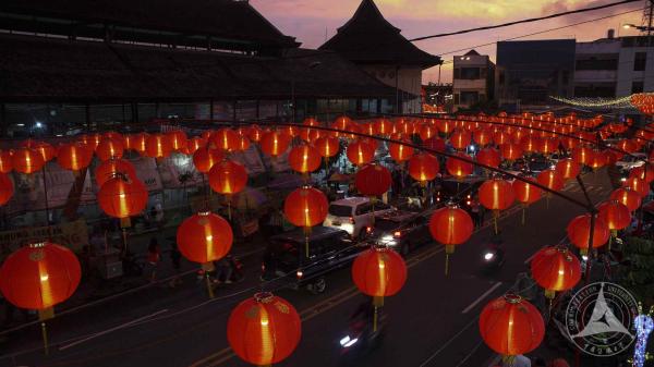 January 21, 2017: Hundreds of Chinese red lanterns in Chinatown ahead of Chinese Lunar New Year in Surakarta, Indonesia. /VCG Photo