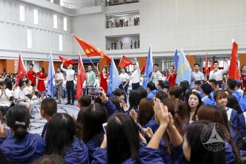 伴随着各位嘉宾精彩而富有内涵的发言,开学典礼接近尾声。播音主持艺术学院带来的诗朗诵《新时代的传媒人,新时代的中国青年》点燃了全场传媒新生的梦想与激情,康辉、朱广权等知名校友也在视频中向母校,向2019级新生送上了最真挚的告白与祝福。最终,开学典礼在全场师生合唱校歌《年轻的白杨》中落下帷幕。