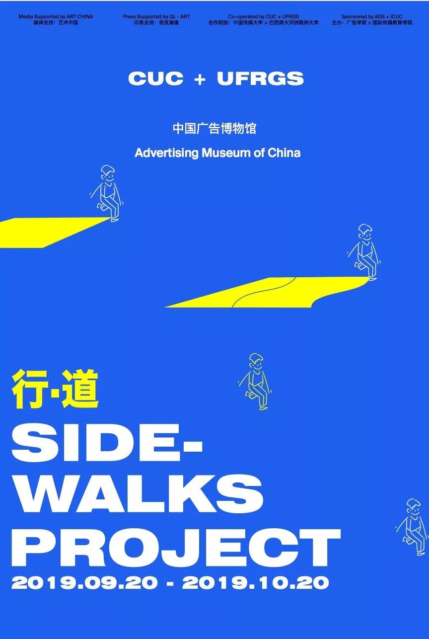 2018年10月,巴西南大河洲联邦大学(UFRGS)教授访问团到世界杯直播在线观看广告学院进行学术交流,巴西方面由设计学院埃尔顿·卡塔尼(Airton Cattani)教授提议与中方合作“Sidewalks”艺术教学实践项目。其后,两校的设计专业展开了为期半年的教学合作,分别在两地组织和指导两校学生共同完成了关于城市地面痕迹的主题性拍摄、设计实践和文化研究。世界杯直播在线观看参与该项目的学生有广告学院设计系18视传的学生和国际传媒教育学院17视传(中外合作)的学生,作品分为摄影、海报和主题延展设计三类。为了充分展现艺术实践项目的优秀成果,两所大学的艺术合作者策划以其所在的城市“北京和阿雷格里港(Porto Alegre)”为名,进行相同主题 “Sidewalks”(行·道)的平行展览。