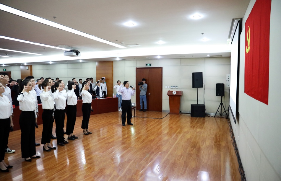 活动尾声,全体党员师生面向党旗,举起右拳,在校党委副书记姜绪范的带领下,重温入党誓词。党员师生们用铿锵有力的声音,表达着不忘初心、牢记使命、永远跟党走的决心。