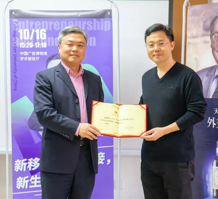 廖祥忠校长还为沈抖高级副总裁颁发了广告学院客座教授聘书。广告学院院长丁俊杰教授、课程设计人何海明教授及学院有关领导参加了会见。