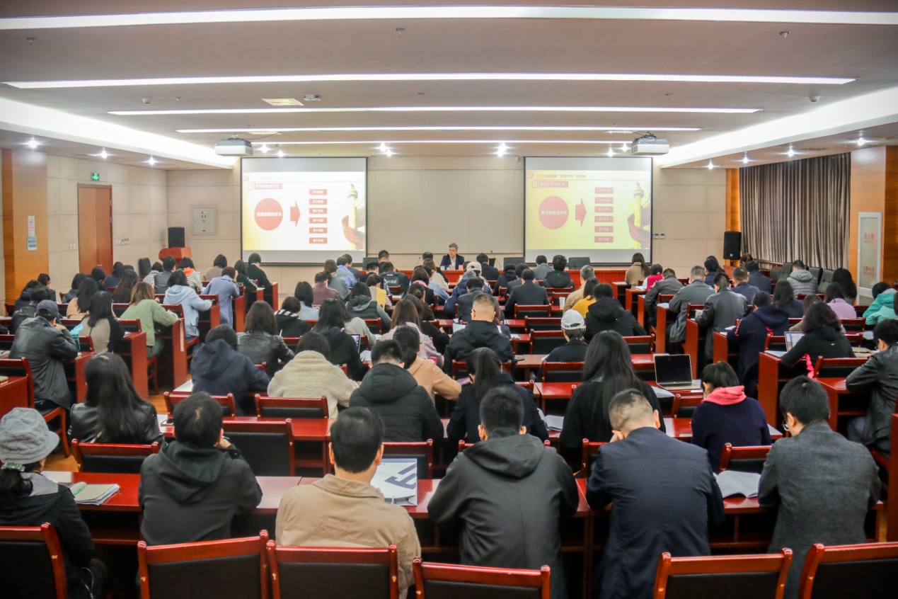 党政办公室人员,研究生院、教务处(招生办公室)、学科建设与发展规划处、人事处(人才工作办公室)、审计处全体人员,科学研究处党支部全体党员,戏剧影视学院、动画与数字艺术学院、音乐与录音艺术学院、广告学院领导班子成员、党支部书记,2018级戏剧影视导演班入党积极分子共200余人聆听了专题党课。