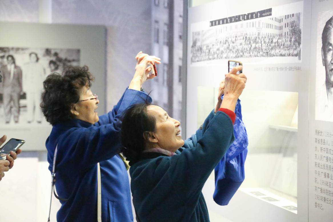 10日上午,在工作人员的带领下,校友们来到校史馆参观。校史馆内滚动的照片墙上不时出现校友们熟悉的面孔,许多老校友看见了自己年轻时候的青涩照片,也仿佛被带回了那段青春岁月。校友们激动地在展品中找寻自己和同学的身影,还有校友找到了自己当年的录取通知书。校史馆中北京广播学院的校门(广院老西门复刻)让校友们感到分外亲切,纷纷合影留念。