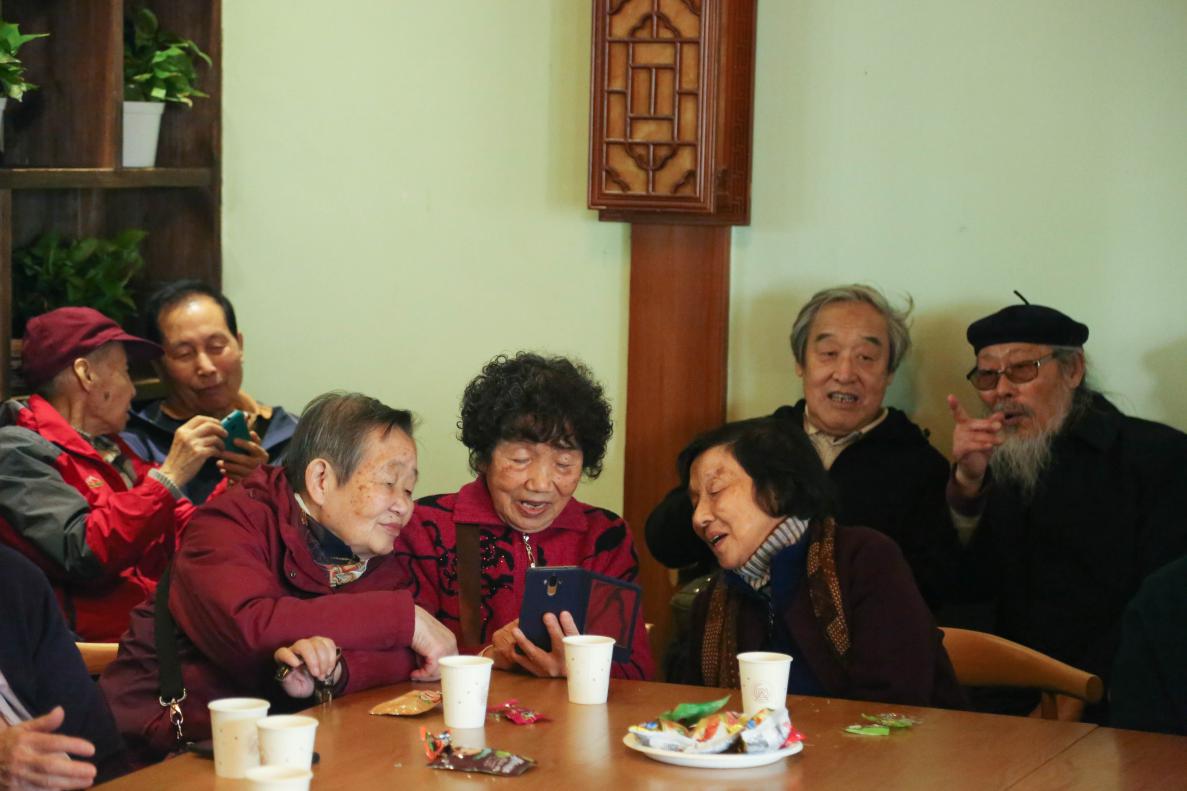 座谈期间,60级无线电系校友前来与“师哥、师姐”会面,并一起合影留念。