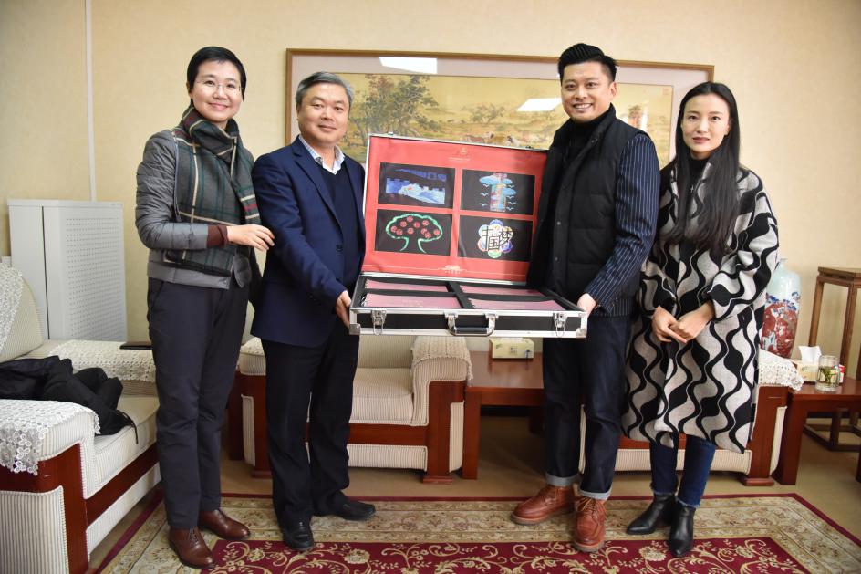 我校戏剧影视学院导演系主任郑月教授,联欢活动主题表演区办公室统筹、北京天启时代文化发展有限公司董事、我校校友宋含笑参加了此次活动。杨光导演一行还向校方赠送主题表演区工作文件档案资料一套,该文件原稿于11月21日被北京市档案馆作为国家级大型活动工作资料永久收藏。廖祥忠校长表示,将把这份我校师生参与的国家庆典工作珍贵档案作为重要的实践教学成果,转予校史馆收藏陈列。