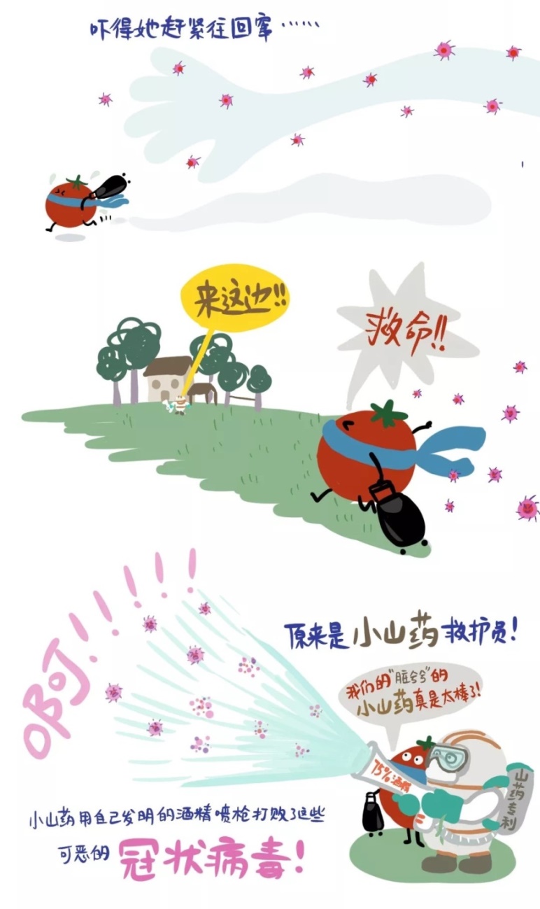 再加上之前在网上浏览到一篇为小朋友创作的病毒科普绘本而受到启发,王婧作为一位绘本作者、一位母亲、一位教师,认为自己有责任和义务创作高质量、优秀的疫情相关绘本,让更多小朋友了解疫情的来源、危害和防范措施。正如她所说的:“我只是尽我所能传递正能量。”