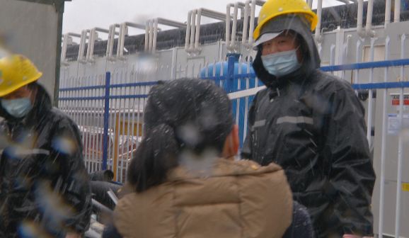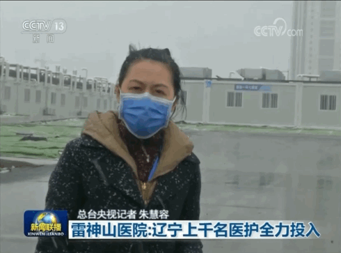 朱慧容探访的最后一站是建设中的病区,这时的雪更加密了,她和同事在雪中报道30分钟,衣服就披上了一层白色。工地上的工人们还在作业,朱慧容的脸被扑面而来的雪花“袭击”。