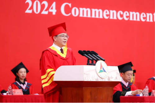 同学们,在你们即将告别母校、走向社会,直面充满未知与挑战的未来之际,期待大家用使命感坚定航向,用创新力拥抱挑战,用行动力实现理想,用从容心面对起落,做更加自信的自己,触达人生的无限可能