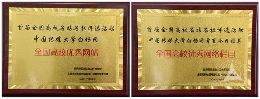 白杨网在2015年教育部首届“全国高校名站名栏” 评选活动中,获评全国高校优秀网站(全国共评选20家),白杨网首页“今日推荐”栏目获评全国高校优秀栏目(全国共评选30个),初步实现了建设“名站”“名栏”的目标。2016年6月,从国家工商行政管理总局商标局传来喜讯,“白杨网”在9大类商品和服务项目上注册成功并取得商标注册证书,在这些商品和服务项目获得法律保护,这9大类分别是第9、16、36、37、38、39、40、42、45类。