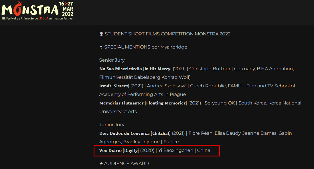 我校学生作品荣获2022里斯本动画节特别表彰奖