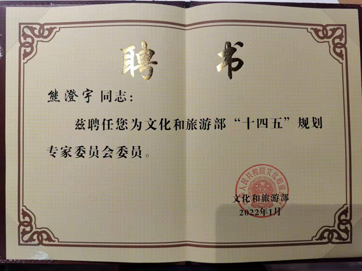 熊澄宇教授受聘为文化和旅游部“十四五”规划专家委员会委员