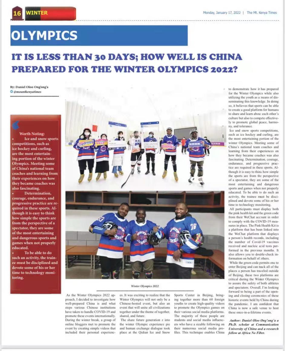 (通讯员 林雅璇 张捷菲)近日,我校传播研究院多名留学生在各自国家的媒体发表文章,从不同角度介绍自己对北京冬奥会的所见所感。秦肯所刊文章电子报所在版面肯尼亚留学生,2019级传播学专业博士生丹尼尔·奥罗(Danie...