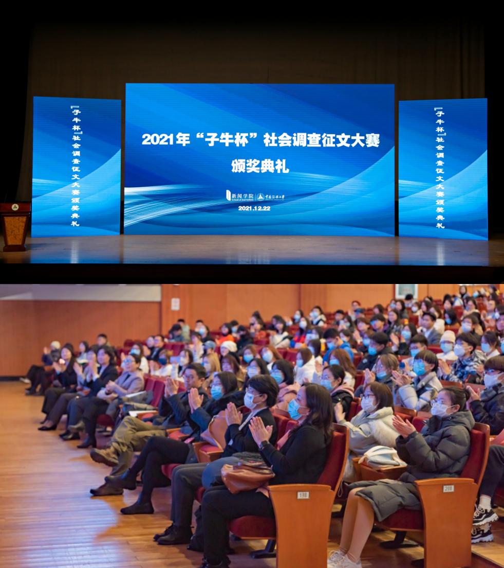 (通讯员 李睿 王佳辉)12月22日晚,2021年“子牛杯”社会调查征文大赛颁奖典礼暨2022年“子牛杯”启动仪式于中传礼堂隆重举行。新闻学院班子成员、评委及指导教师代表、获奖学生代表、2021级本科及研究生等400余人...