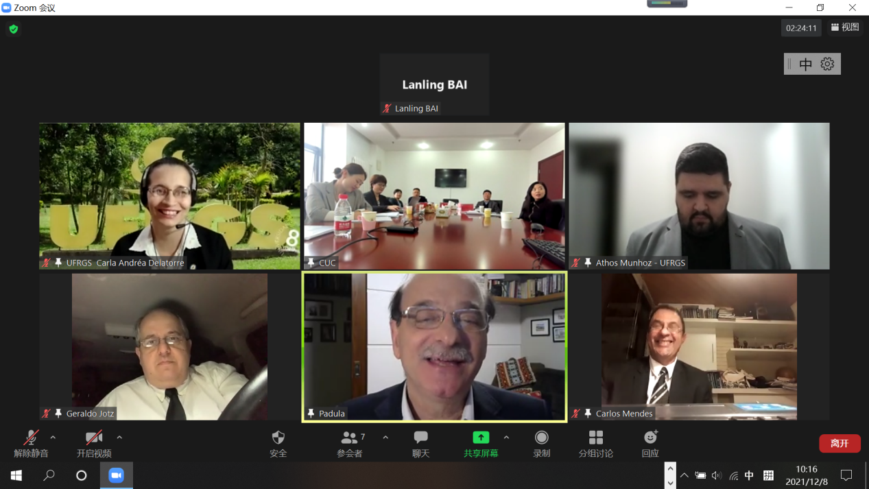 12月8日,我校共建巴西南大河州联邦大学孔子学院年度理事会议成功举行。虽远隔上万公里,但双方的线上交流真诚友好,富有成效。我校段鹏副校长作为中方副理事长出席会议,并首先发表致辞。段鹏副校长表示,我们与南...