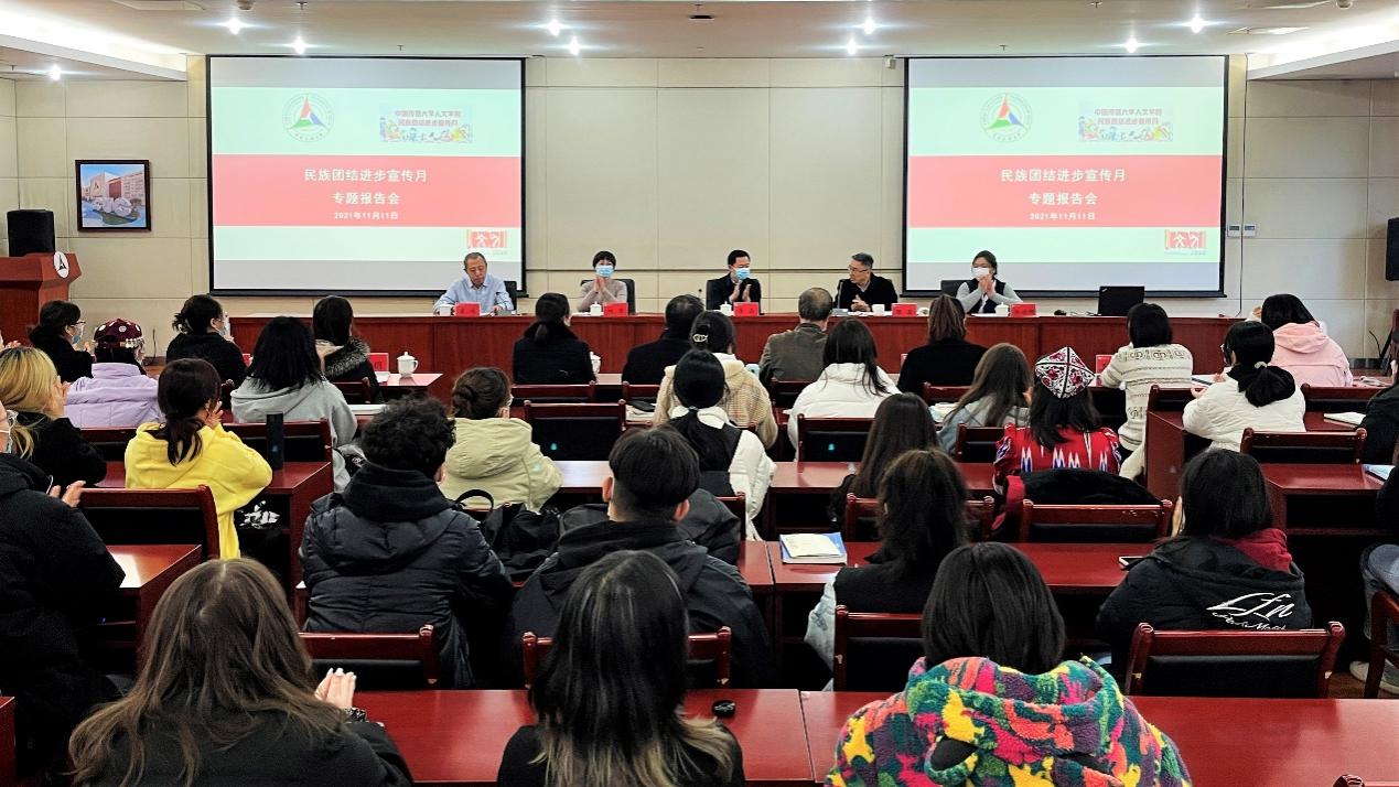 (通讯员 文文 摄影 王庆福)为贯彻落实习近平总书记关于民族工作的重要论述和党中央决策部署,铸牢中华民族共同体意识,促进各族师生的和谐发展,11月11日下午,人文学院在明德报告厅举办2021年民族团结进步宣传月系...