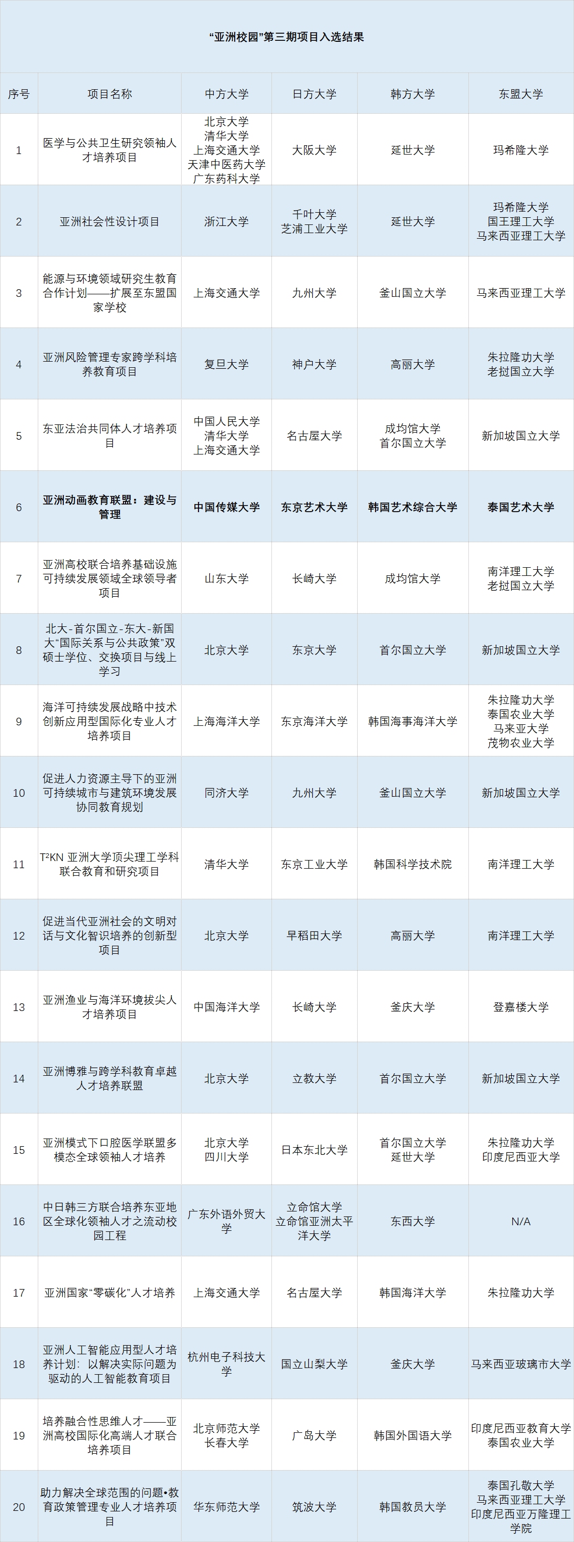 (通讯员 王珏)近日,教育部国际合作与交流司发布《关于公布“亚洲校园”第三期项目入选结果的通知》,我校和东京艺术大学、韩国国立艺术综合大学、泰国艺术大学联合申报的“亚洲动画教育联盟:建设与管理”项目成...