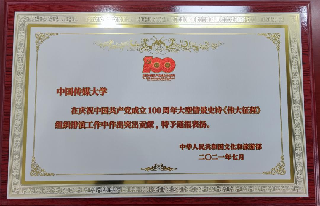(通讯员 王昂)11月15日,我校参演庆祝中国共产党成立100周年大型情景史诗《伟大征程》表演团队荣获文化和旅游部通报表扬,以表彰我校师生在庆祝中国共产党成立100周年文艺演出活动中的突出贡献。6月28日晚,庆祝中...