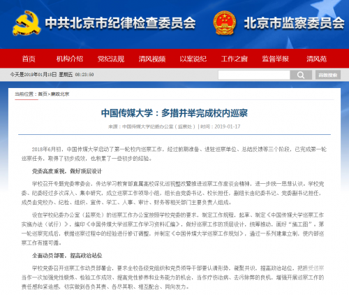 北京市纪委监委网站报道我校开展校内巡察典型经验